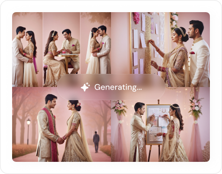 Make every detail of your wedding uniquely yours with AI. From music to invites, design a celebration as magical as your love story.